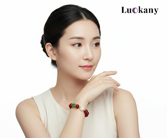 Red Jade Four-Leaf Clover Lucky Angel Bracelet