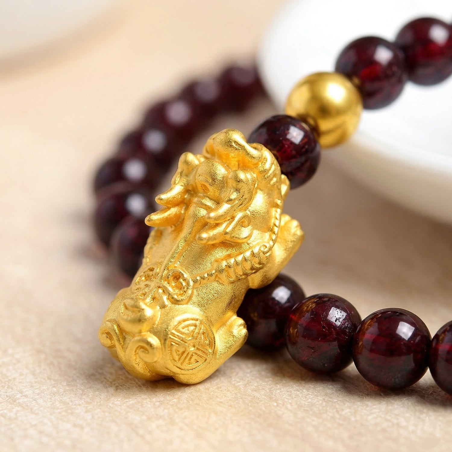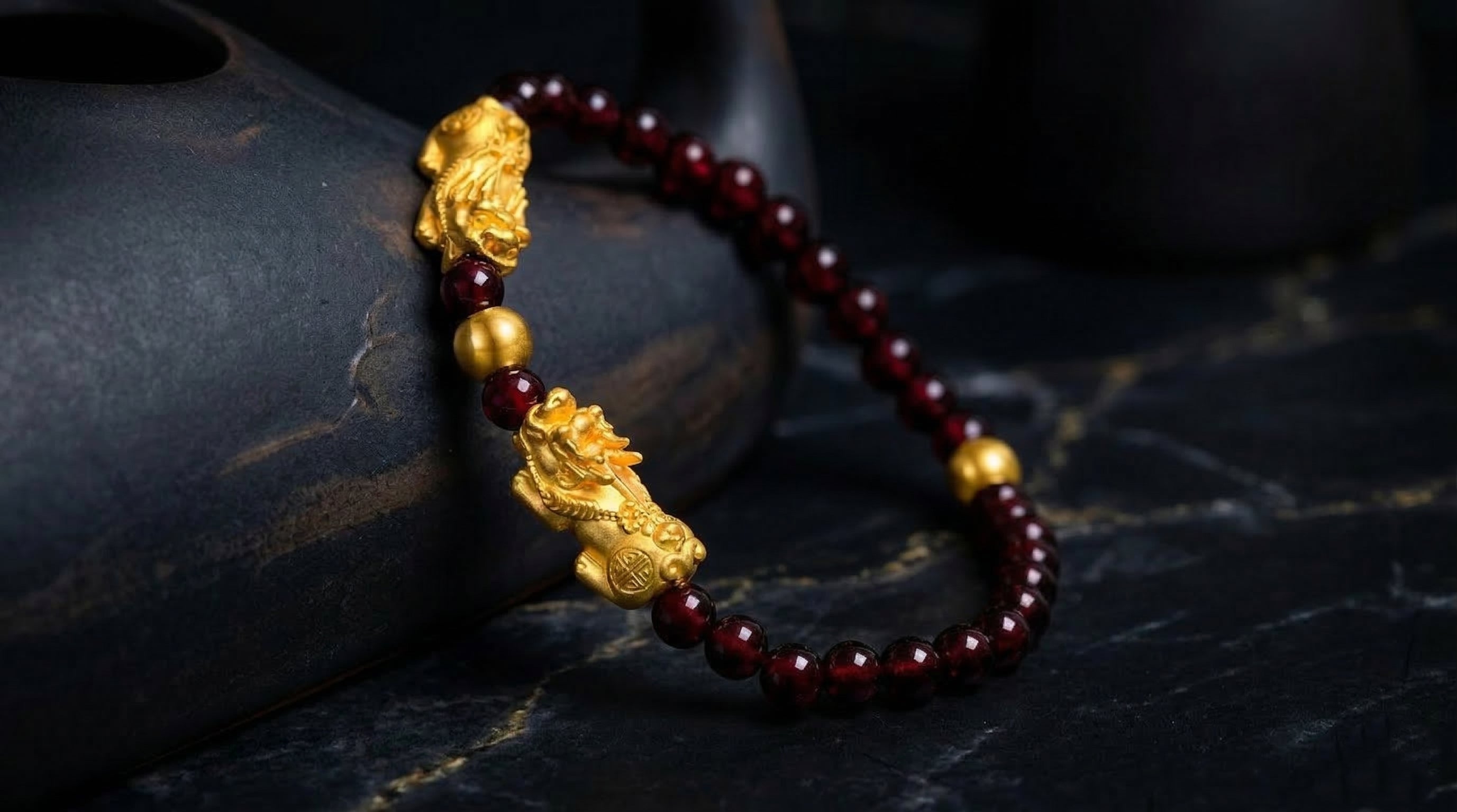 Gold Pixiu Red Agate Bracelet | Wealth & Protection Energy Bracelet